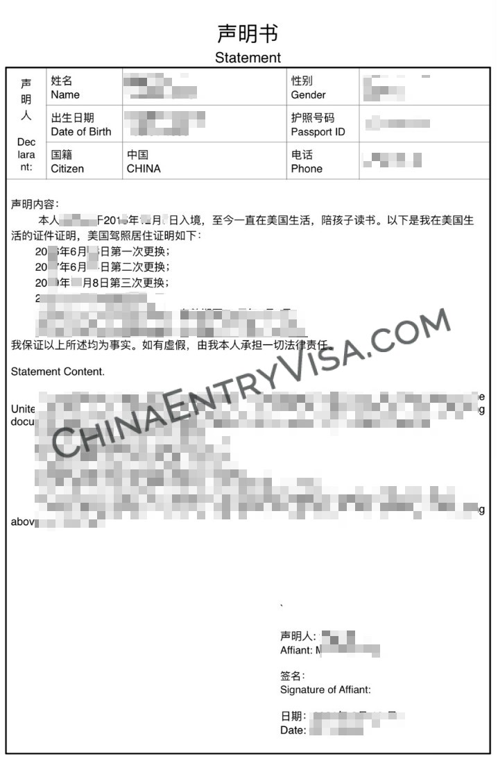 2)无绿卡: 声明书公证认证,声明在美国居留:何时以何身份来美,居住地,身份变化(比如取得绿卡,改H1B)等。