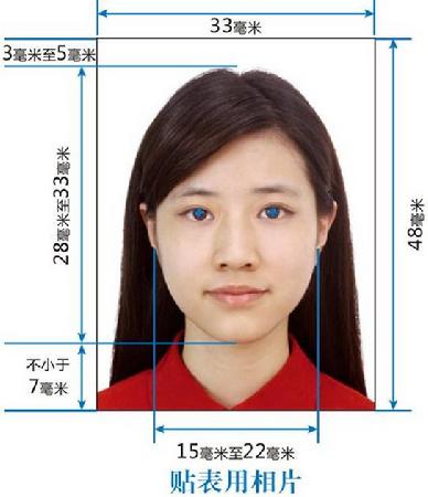 二、照片尺寸为48×33mm。头部宽度为15-22mm,头部长度为28-33mm。