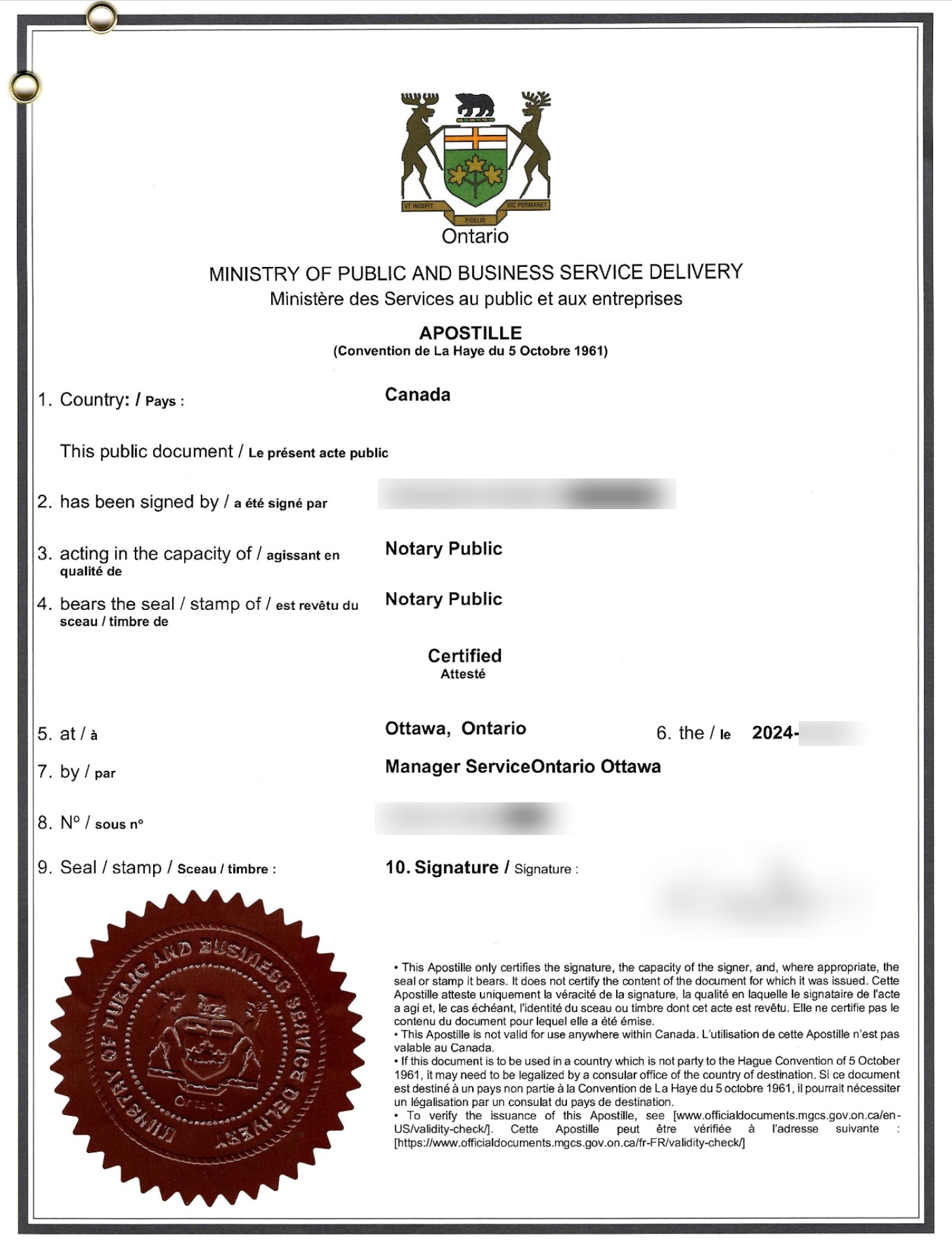 附加拿大海牙认证样本(Canadian Apostille Sample)