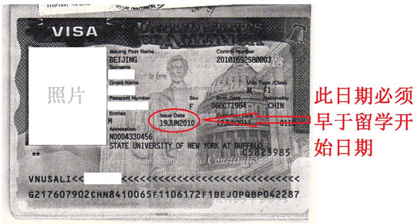 b)本段留美经历的美国VISA页,并用红笔圈出Visa Issue Date